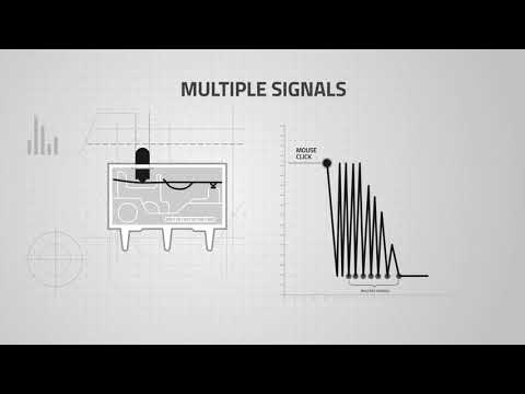 Mechanische Switches senden ein elektrisches Signal über Metallkontakte und erzeugen eine störende Rückfederung, die mehrere Signale und so ungewollte Mehrfachklicks zur Folge haben kann. Um sicherzustellen, dass nur ein Klick ausgelöst wird, wird eine Entprell-Verzögerung eingesetzt – das resultiert in einer langsameren Reaktionszeit.
