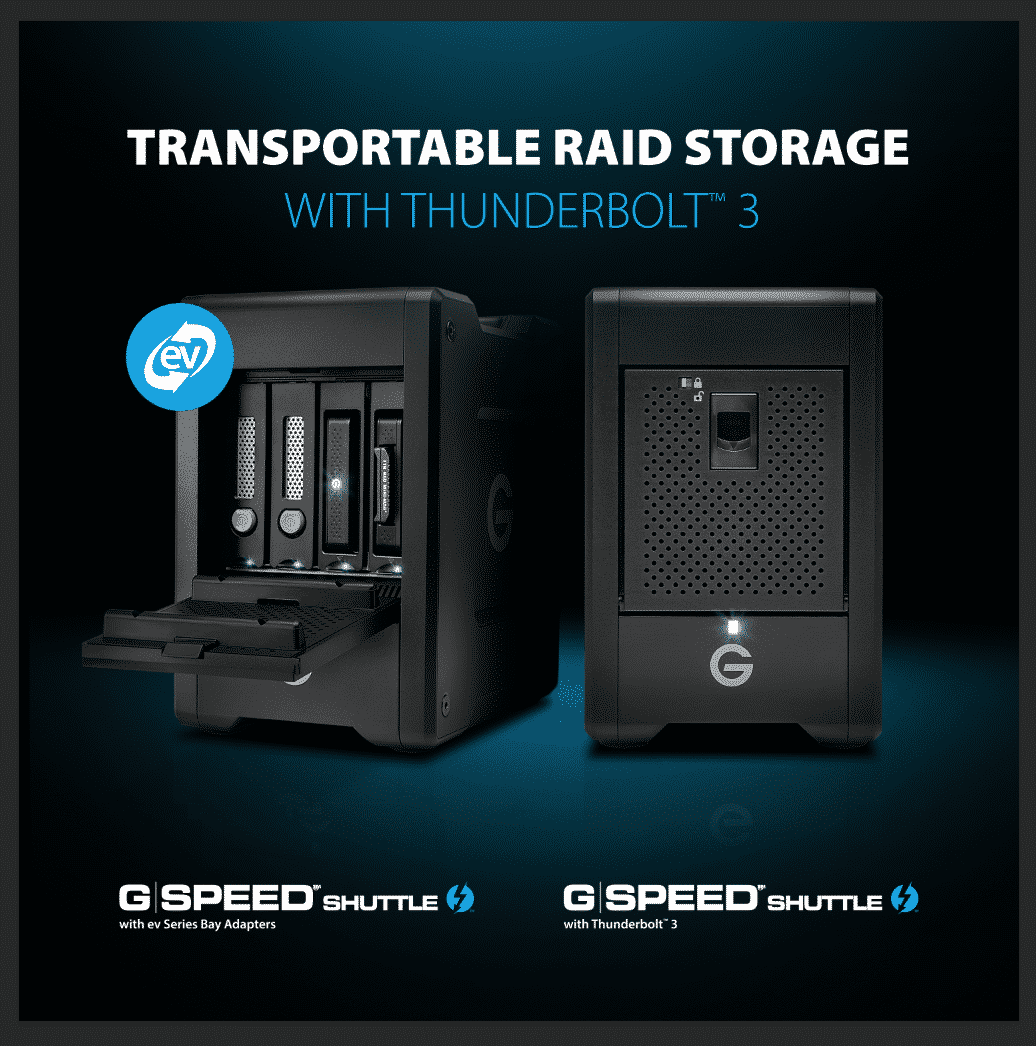 - G-SPEED Shuttle mit ev-Series-Bay-Adaptern: Dieses Modell weist ähnliche Merkmale wie das G-SPEED Shuttle mit Thunderbolt 3 auf. Die integrierten ev-Series-Bay-Adapter verbessern jedoch die Workflow-Optionen und Produktivität, da sie eine übergreifende Funktionalität mit allen ev-Series-Laufwerken und -Readern sicherstellen. Zudem zeichnet sich das Modell durch erhöhte Zuverlässigkeit und Übertragungsraten von bis zu 500 MB/s und eine Speicherkapazität von bis zu 24 TB aus. Das G-SPEED Shuttle mit ev-Series-Bay-Adaptern ist ab sofort in den U.S. in einer 20 TB- (US-Verkaufspreis von 1.999,95 US$) und einer 24 TB-Version (US-Verkaufspreis von 2.299,95 US$) erhältlich.